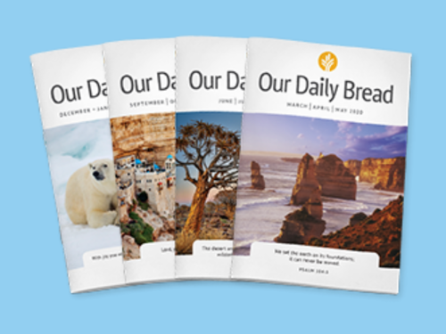 Our Daily Bread offers a free, daily devotional available through email, web, an app, Facebook, or in print (learn more at odb.org). In fact, you can pick up the free monthly print edition at Grace Central in the auditorium lobby.